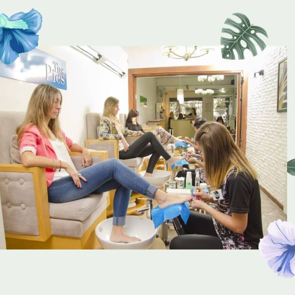 Sectores de Manos y Pies: 4 sectores combinados con sillones de diseño (fijos, cromados), equipados con bachas de loza y grifería. Diseñados para permitir el trabajo simultáneo de dos profesionales por sector (manicuría y pedicuría).